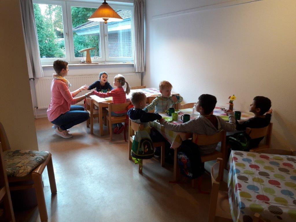 Seit einigen Wochen frühstücken die Kinder aus allen drei Kindergartengruppen nacheinander im Gänsestall. Auch als Raum zum Mittagessen wird er genutzt. Und am Nachmittag treffen sich die Kinder hier zur „Schmause-Pause“.